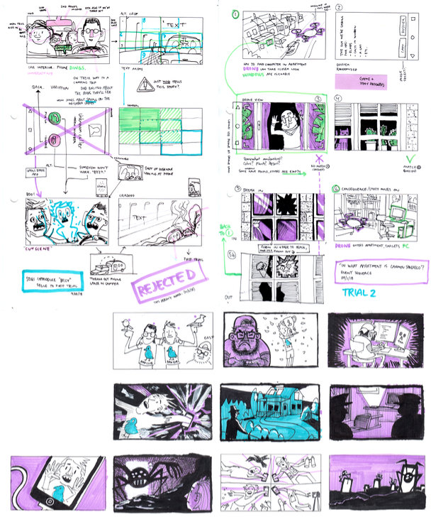 Jeg skrev og tegnet en haug med storyboards...